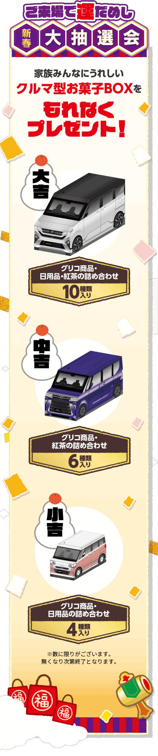 ■画像は全てイメージです。賞品の仕様は予告なく変更する場合がございます。■フェア期間は販売会社によって異なる場合がございます。■一部の店舗では実施していない場合がございます。■営業日は店舗によって異なります。■その他個数等、詳しくは販売会社スタッフにお問い合わせください。